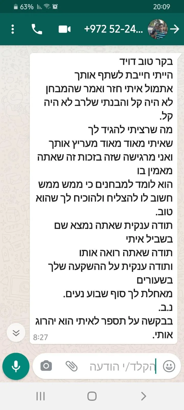 אני יכול להבטיח את השיפור הזה – כשהוא לומד רק 6-7 שעות בשבוע